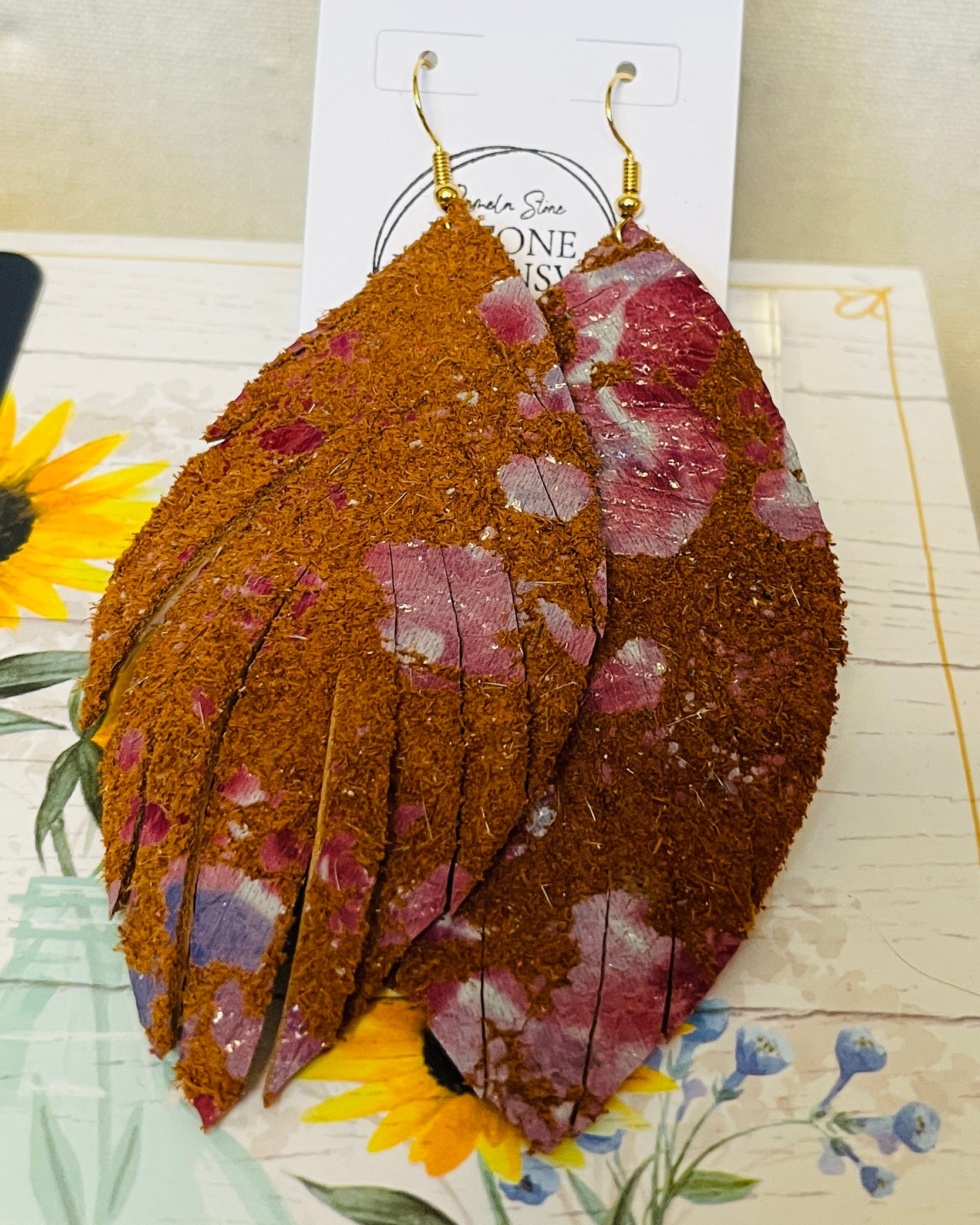 Add a Boho vibe to any look with MiaK leather feather earrings in Mini, Small, and Large, beautifully crafted studs, beaded treasures for any festival, and leather petals. All earrings are handmade by MiaK Designs, a crafter from Fairhope, Alabama. Some feature a signature gold thread for an elevated finish.